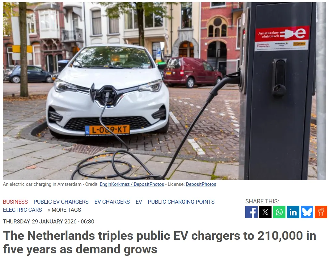 充电设施的快速扩张,与电动车保有量的激增密切相关。数据显示,2025年荷兰登记在册的电动车数量接近120万辆,而在2020年这一数字仅为约27万辆,短短五年增长超过四倍,对充电基础设施提出了更高需求。