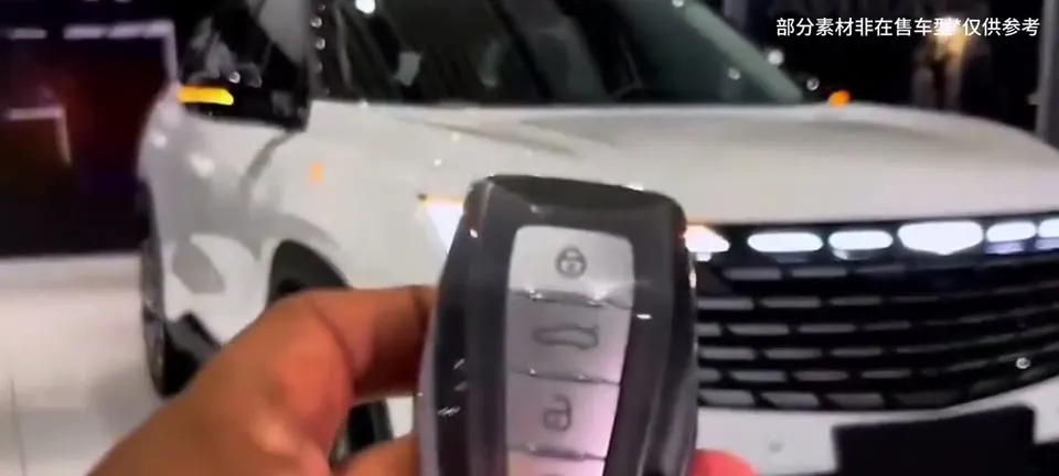 对了,车钥匙也给大家看一下,就是一个标准的吉利家族式设计。