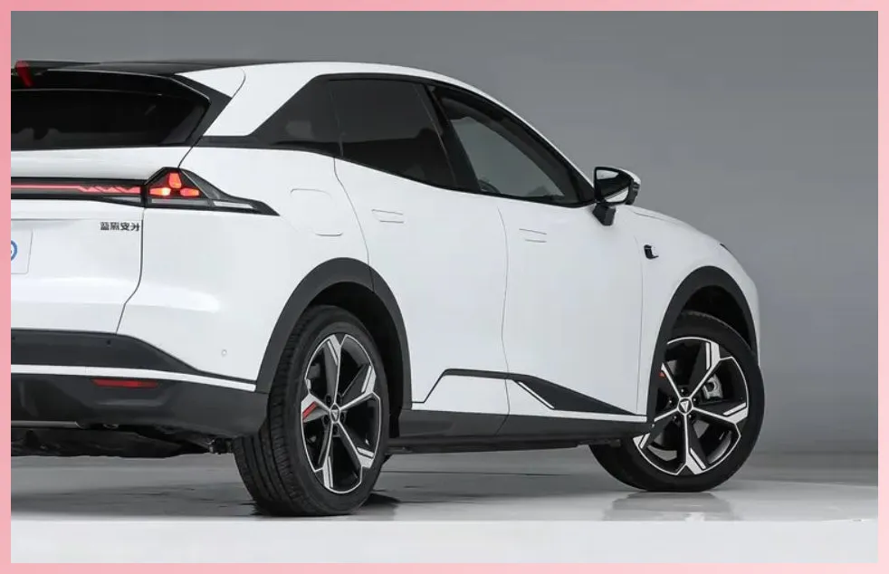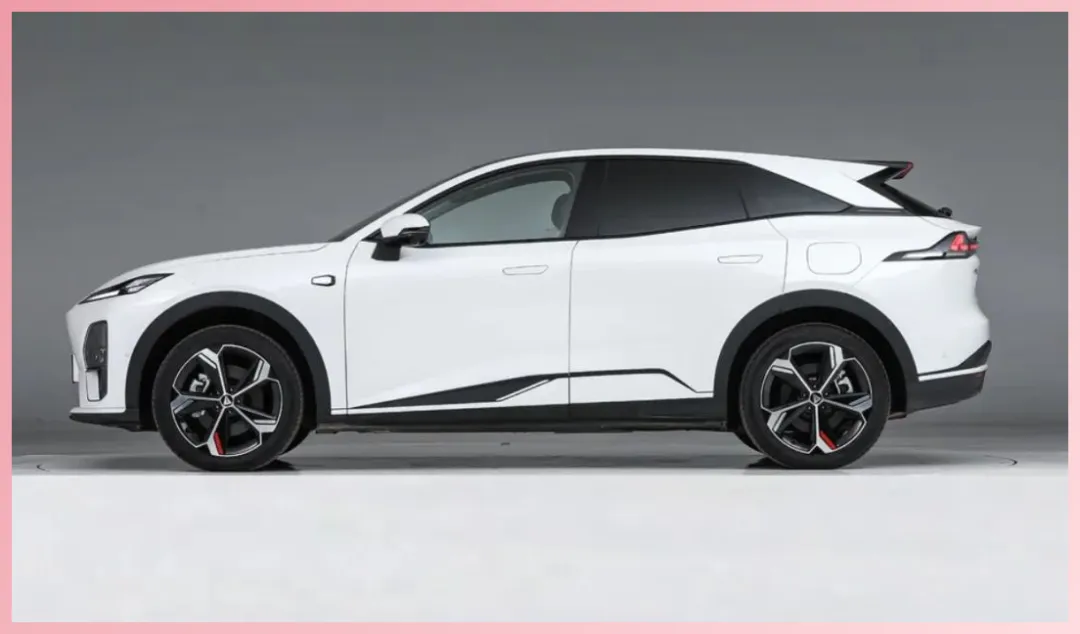 侧面来说,深蓝S07车的一个特别地方就是可以自己定制外观,包含车身拉花和撞色。我个人喜欢折腾这些,如果购车,可能会选择骚气的配色,并贴个性化的拉花,因为车的造型就很适合这样搭配。