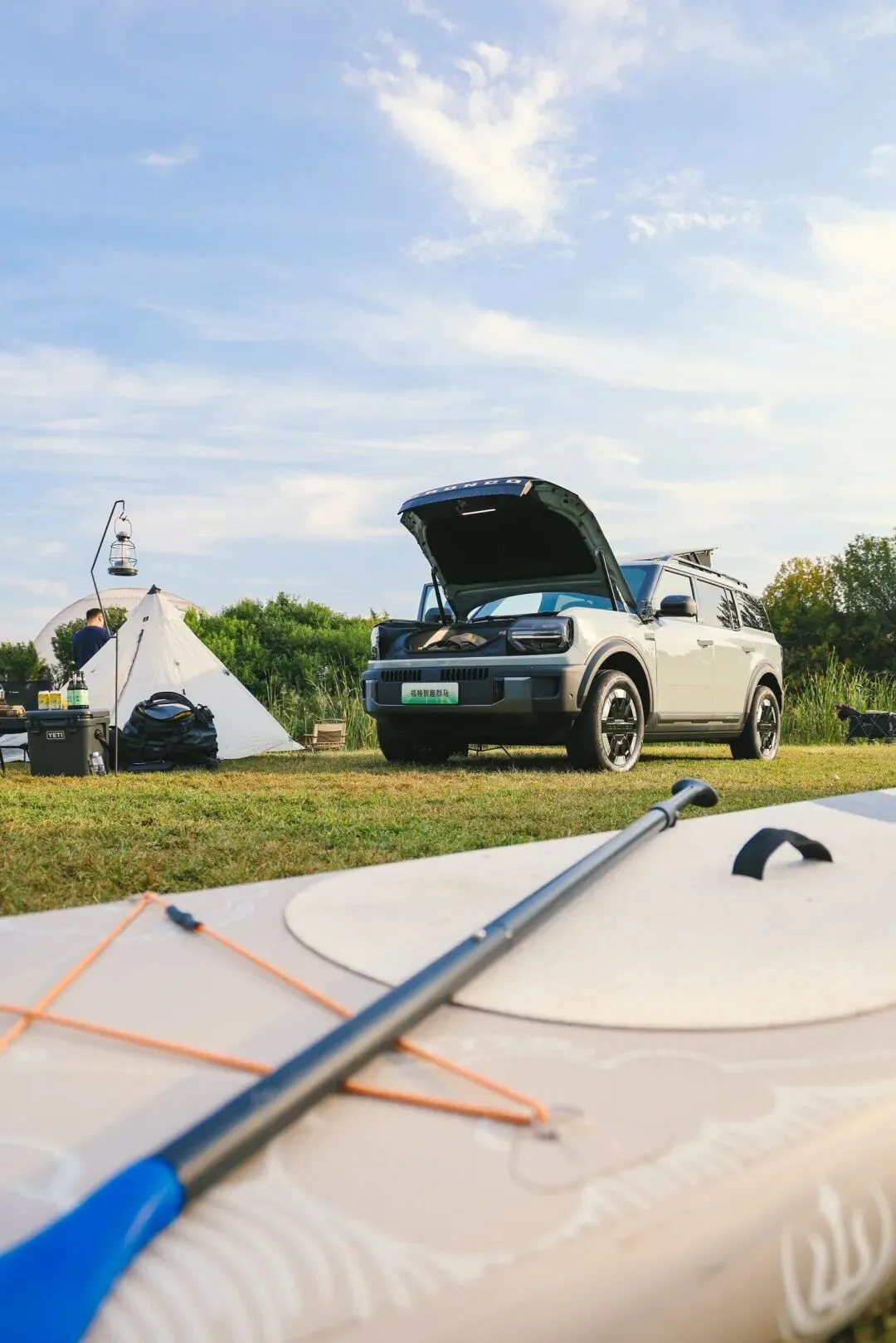 有个.亮点必须说——这车真.能“做.饭”。后备箱能放下官方配.的一个外拓厨房模块,简单说就一块滑.轨+小灶台+电源接.口。你在营地或者城市边.上停好车,接.上220V,就能.煮个面煎.个蛋。我试着伸手.操作了.一下,滑轨阻尼还不错,就是炉台位置有点低,怕长个子的朋友得弯.腰。要我是设计.师,真想让它能.升高点.就.更完美了。