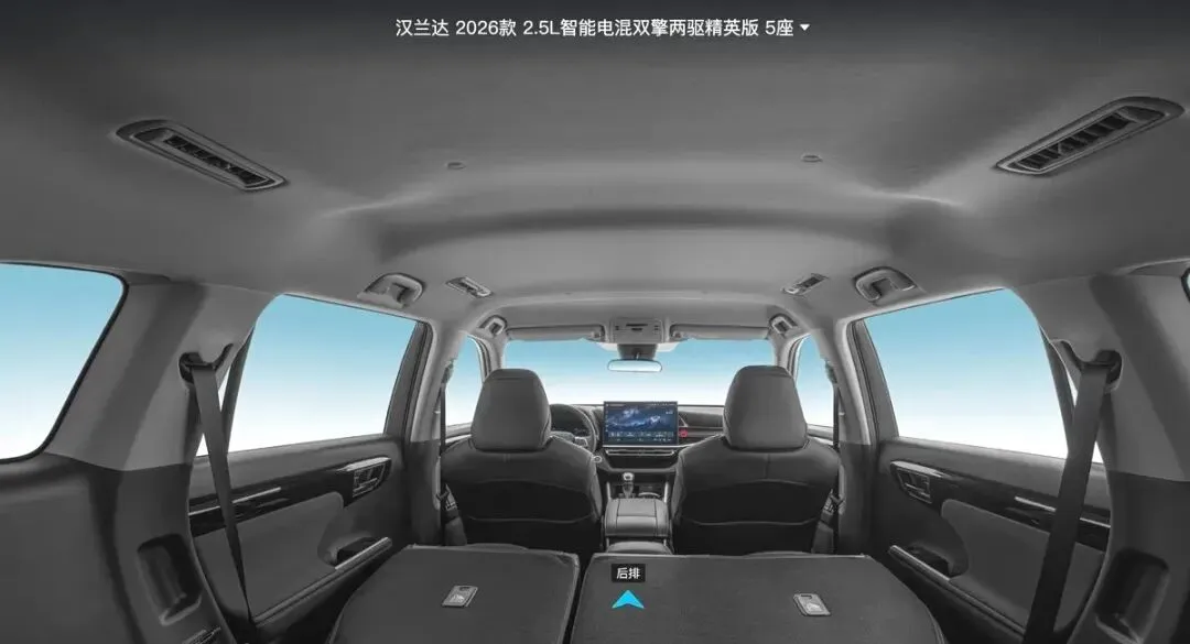 后排独立控制:中央扶手区设有独立触控屏,可控制空调、娱乐等功能,出风口设计与汉兰达相似。