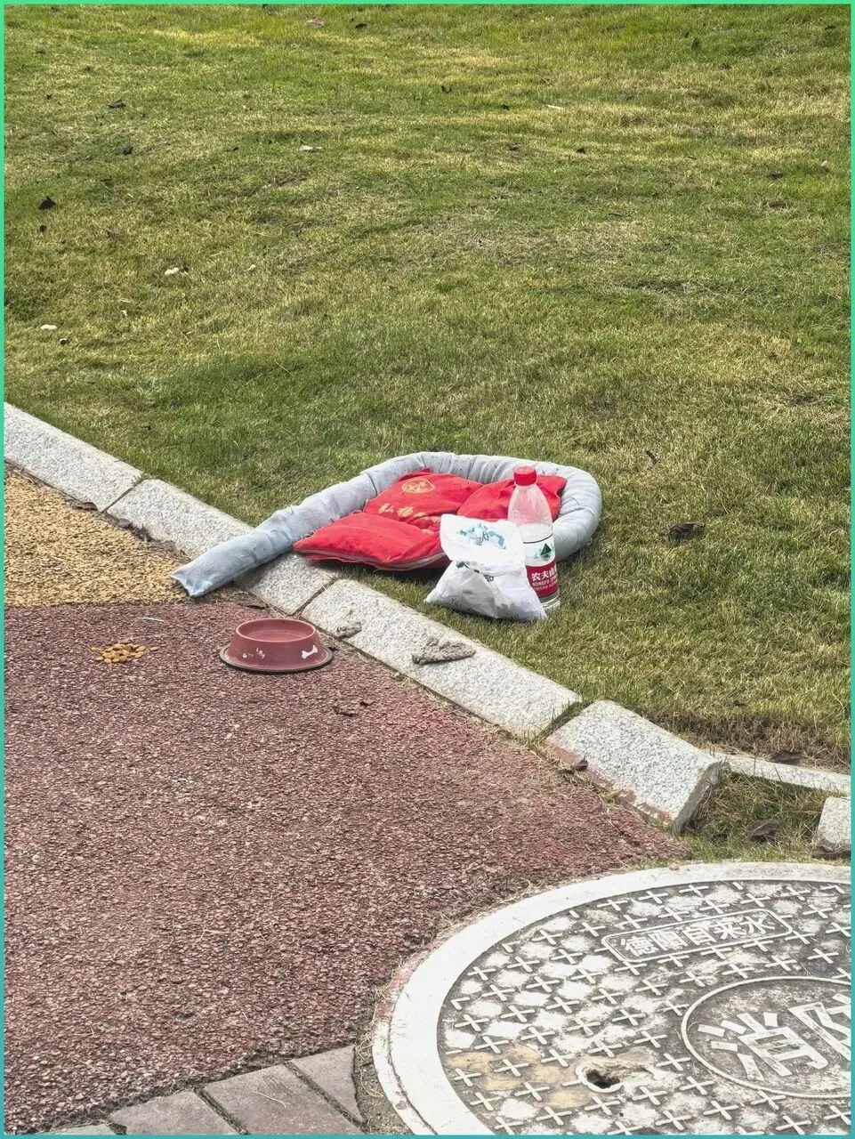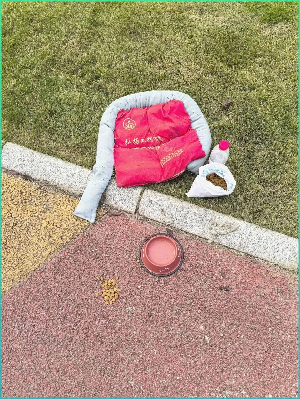 那是一个被人随意.丢弃的灰.色棉窝,上面放着.两个红色的抱枕,旁边还有一袋没吃完的狗粮和半瓶矿泉水。看起来,前主.人走的时候,把它的全部家当都.扔下.了。这算是最后的仁慈,还.是为了让自己.良心好过一点的施.舍?