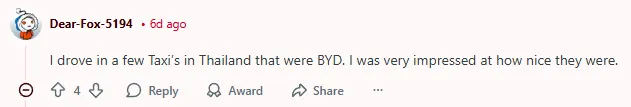 「我在泰国坐过几辆比亚迪出租车,它们给我留下了非常深刻的印象,感觉非常好。」参考阅读:https://driveteslacanada.ca/news/byd-is-already-cleared-to-sell-evs-in-canada-giving-it-a-big-head-start-over-rivals/https://www.reddit.com/r/EVCanada/comments/1qnyuux/byd_is_already_approved_to_sell_cars_in_canada/