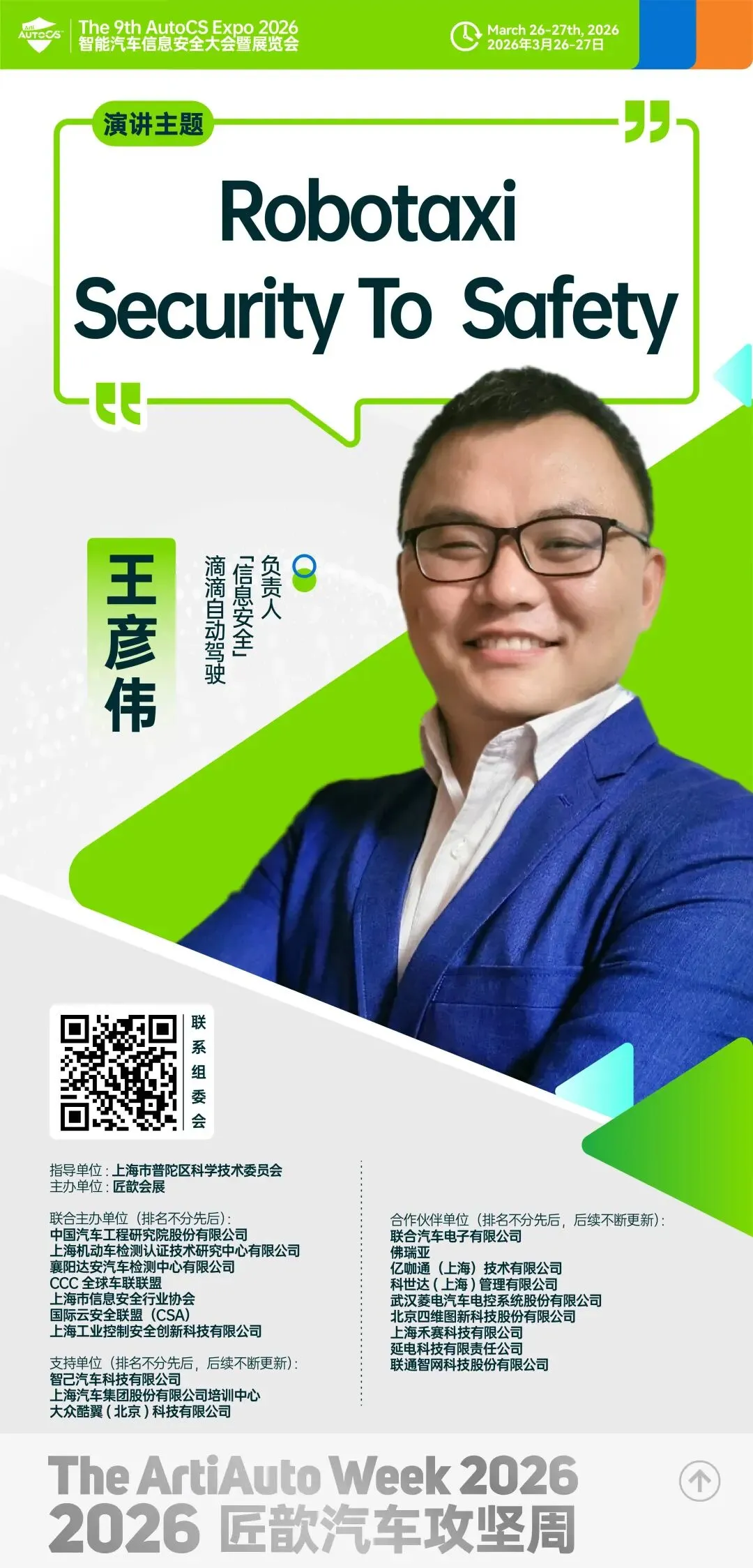 这不是遥远的未来,这是正在发生的现在。信息安全(CS)、无钥匙进入(PEPS)、辅助驾驶(Driving),正是驱动这场革新的三大核心齿轮。我们不止于讨论,我们更致力于“破解”与“构建”。2026年3月26-27日,上海,“The ArtiAuto Week 2026匠歆汽车攻坚周 ”正式集结。这里没有浮夸的展望,只有硬核的探讨、实战的分享与前沿的碰撞。AutoCS、AutoPEPS、AutoDrive三线并进,一票通行,直面智能汽车最深层的挑战与机遇。