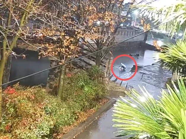 意外坠入河水中