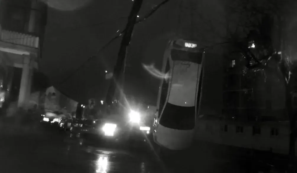 一辆轿车因天色漆黑