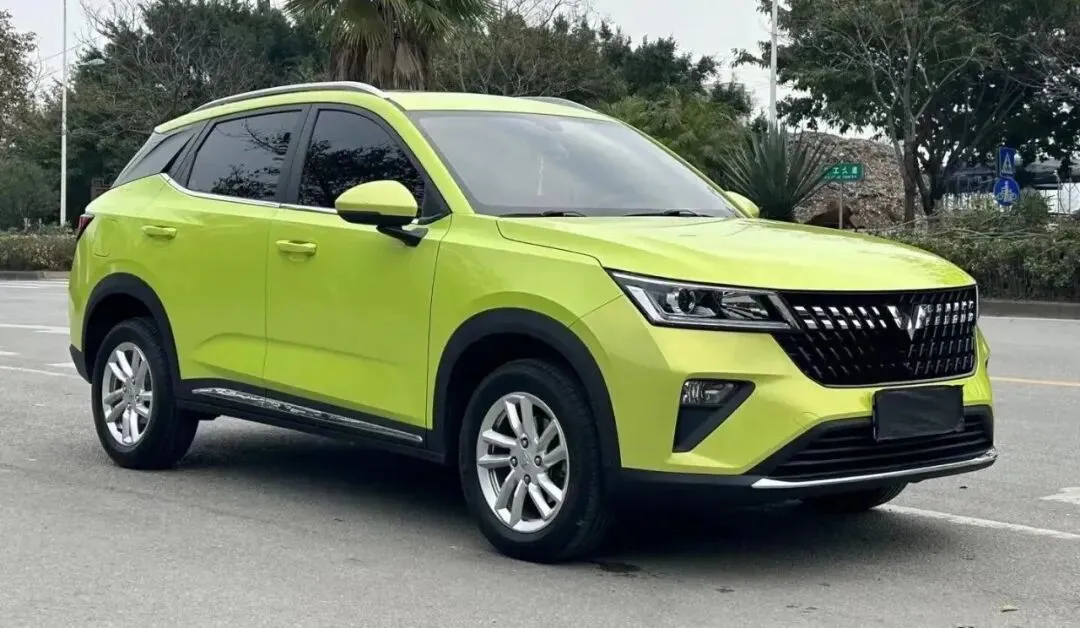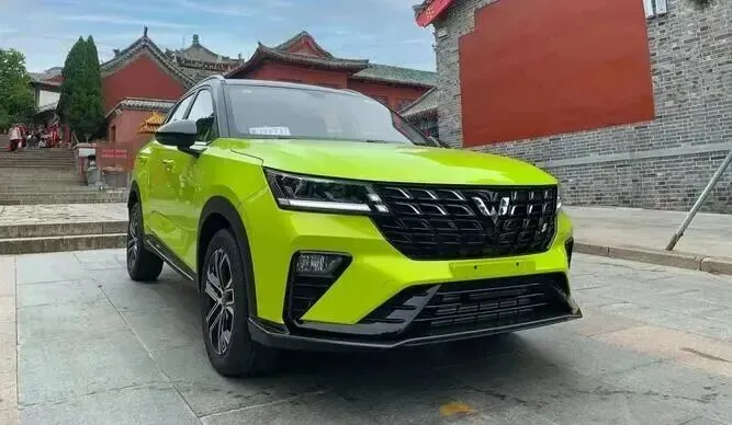 我看.的是1.5T CVT潮酷型,外观那.个纽.北黄,你在路上.一眼.肯定.能认.出来,亮度非.常高,有种.荧光绿掺.点柠.檬黄的感.觉,.真不丑,甚至挺.帅的。前脸中网.黑化再.配上.银色.的五菱.标,加一个S的小.标志,挺精.神的。灯组和.中网是.连在一起.的,看着.像一.个整.体,视觉.宽度够,也不.至于有那.种廉价.感。