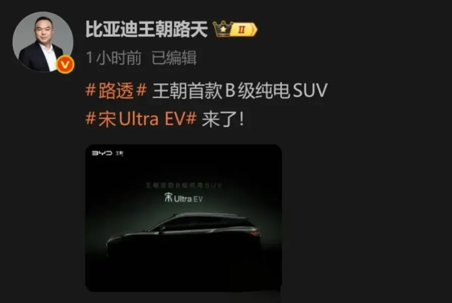 随着宋Ultra EV的加入,比亚迪在B级纯电SUV市场的布局更加完善。预计该车型将于2026年第二季度正式上市。