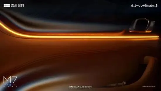 内饰方面,吉利银河M7采用双色皮质包覆的设计,配合大面积软性材料,提升了内饰质感。中央配备了一块大尺寸悬浮式中控屏,从界面UI判断,预计将搭载Flyme Auto智能座舱系统。中央扶手区域保留了大量物理按键和旋钮,旋钮采用水晶质感材质,兼顾实用性与豪华感。还可以看到,新车配备了三辐式多功能方向盘、前排手机无线充电面板以及氛围灯等。