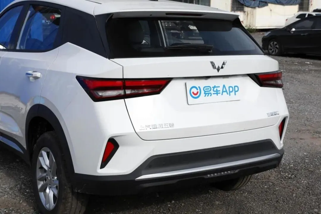 然后我往侧面一看,这车轴距目.测得.有2800mm出头吧,门.挺大,比例协调。轮毂我个人觉.得.稍微小了点,如果能给.个19寸.或者两种配置选择就更好了。尾部.双层.设计,那个贯穿灯带有.点熟悉啊……有点像五菱星.光那套思路。但问题也不.大,反正五.菱自己.内部复用挺多,我理解,他们成本得算着来。整体车身姿态是那种偏高挑.的SUV,我.身高180,站旁边也不是特别压不住,反.而挺.和谐的。
