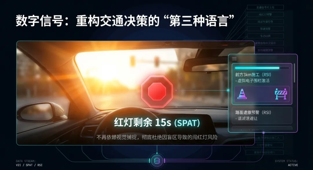 如果说物理传感器解决了“看见”的问题,那么路侧广播的数字信号则解决了决策的“确定性”。在智能网联的安全逻辑里,数字信号不仅是信息的补充,更是物理冗余。