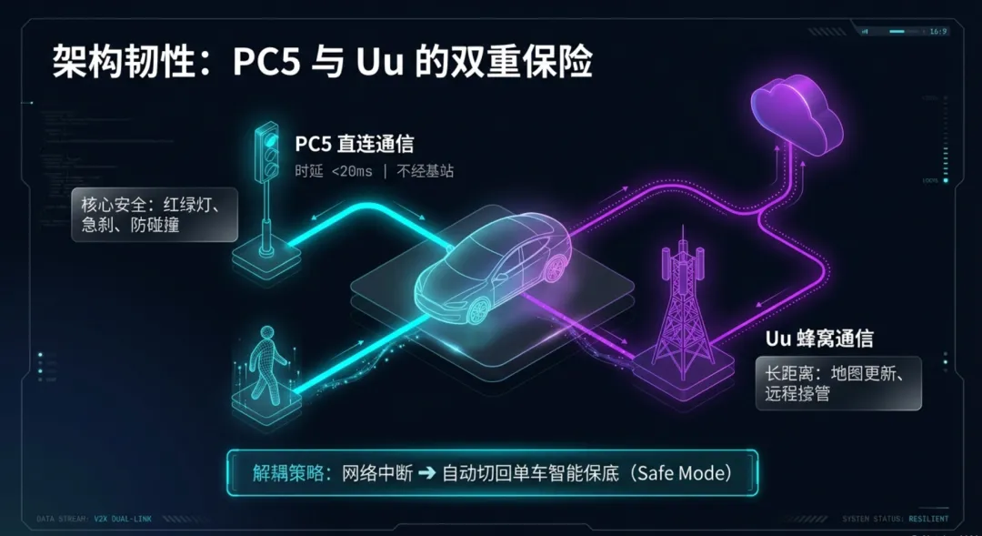 三、 架构的韧性:PC5 与 Uu 的双重保险