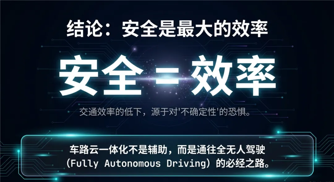 回到最初的论题:“车路云一体化只提升效率不保安全”我认为是一个伪命题。效率与安全本质上是同构的。交通效率的低下,往往源于对“不确定性”的恐惧。