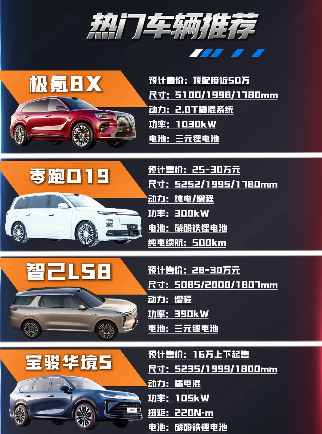 本次盘点的四款车型——极氪8X、零跑D19、智己LS8和宝骏华境S,分别代表了不同品牌在这一细分市场的战略布局,从高性能旗舰到高性价比选择,覆盖了从25万到50万的价格区间,为消费者提供了多样化的优质选择。