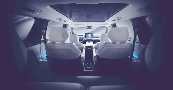 先聊内饰吧,单看预告图就够让人心里痒的。第二排整了两个独立座椅,样式有点像飞机头等舱那种,每个座位都有自己的“小天地”,中间还留着挺宽的过道,不光坐着舒服,第三排的人上下车也不用费劲挤来挤去。座椅包的是浅色的高级皮子,摸上去估计细腻得很,边角走线也讲究,细密匀称的缝线看着就有品质感。整个座舱的底色用了偏深的蓝紫调,不扎眼但很有味道,车门和座椅边缘又点缀了多色的氛围灯,光一打,柔柔和和的,坐在里面跟被一层静谧气场裹住似的,既优雅又带着点未来的味儿。