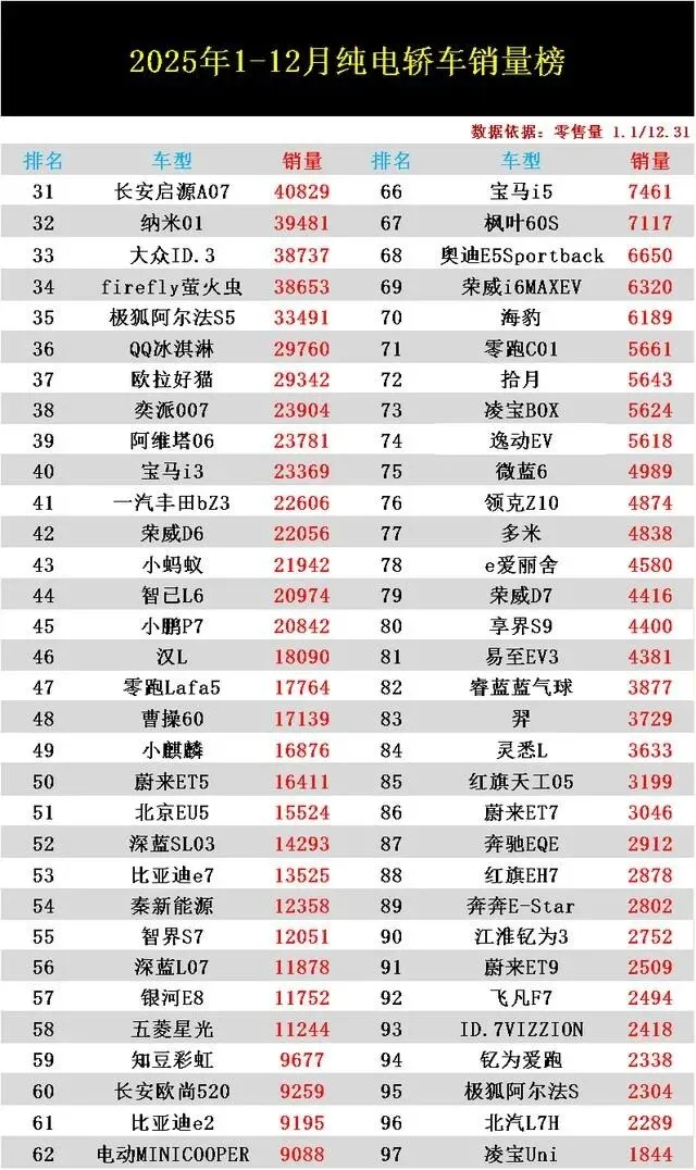 有些车徘徊在2万上下,这个成绩不算差,但在纯电轿车这个高速变化的赛道里,很容易被新一轮产品冲刷下去。它们可能输在亮点不够突出,或者在营销和渠道上没有形成强记忆点,买家挑车时很容易滑过去。至于那些勉强破万的,基本是在夹缝里求生存,得赶紧在产品迭代或者差异化上下功夫,不然以后上榜的机会只会更少。