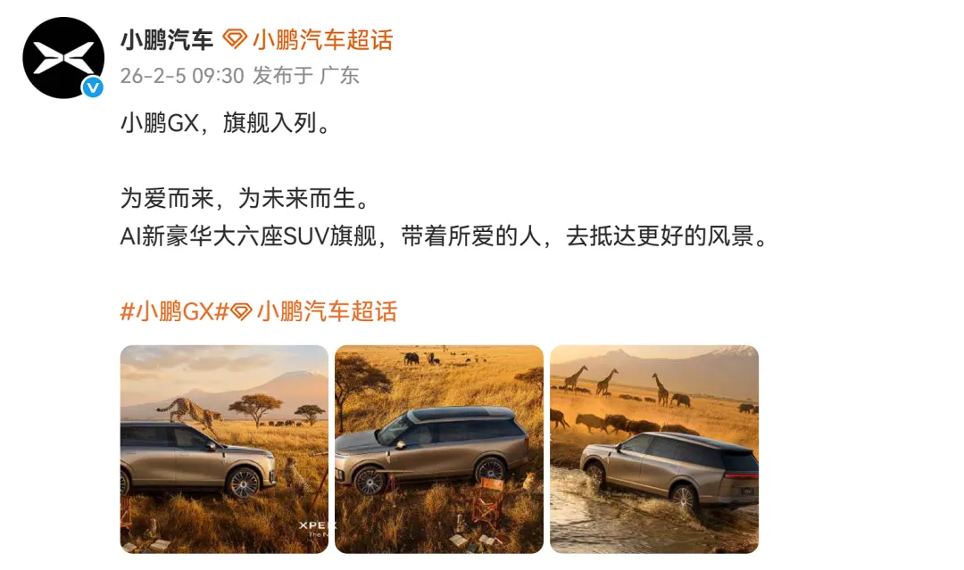 据悉,小鹏GX的内部代号为“G01”,小鹏汽车创始人何小鹏认为“G01”代表的是“第一性原理”,小鹏用AI的思维重新设计了一台全尺寸家用旗舰SUV;何小鹏还表示,“X”代表对出行美好位置的探索,更代表小鹏骨子里的科技基因——坚持用技术彻底解决问题。