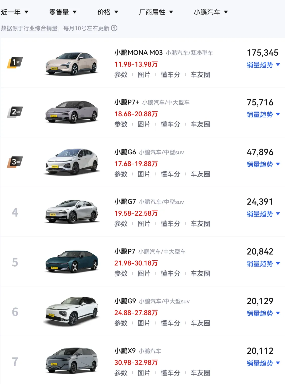 从销量上来看,无论是全新的小鹏P7+,还是小鹏X9,都没有扛起销量的大旗,小鹏还得靠着小鹏MONA M03来获得销量;因此也有网友调侃,小鹏不如只保留MONA 系列,再做个MONA SUV和MONA MPV就够了。