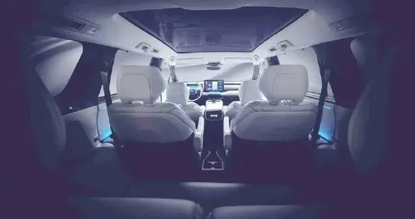 作为家用定位的中大型SUV,空间实用性是核心亮点。新车第二排配备两个独立航空级座椅,中间留出宽敞过道,就算是身材高大的乘客,进出第三排也不会觉得局促——家里有老人小孩的话,上下车会特别方便。座椅用浅色高级皮革包裹,缝线工艺精致,坐上去包裹感和支撑性都在线。整个座舱以蓝紫色为主调,车门和座椅边缘还有柔和的多色氛围灯,晚上开车时,车内就像移动的"星空座舱",既静谧又有格调。