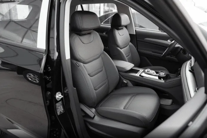 座椅方面,入门款织物座椅亲肤透气,中高配仿皮材质触感细腻,拼色缝线还很显质感。座椅填充软硬适中,贴合人体工学,包裹感到位,跑长途也不觉得累。主驾中高配是电动调节,还带腿托和腰部支撑,高矮胖瘦都能找到舒服坐姿,后排靠背可调10°,还几乎纯平的地台,中间乘客也不憋屈,还有带杯架的中央扶手。高配前排座椅带加热通风,四季乘坐都舒服。