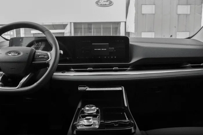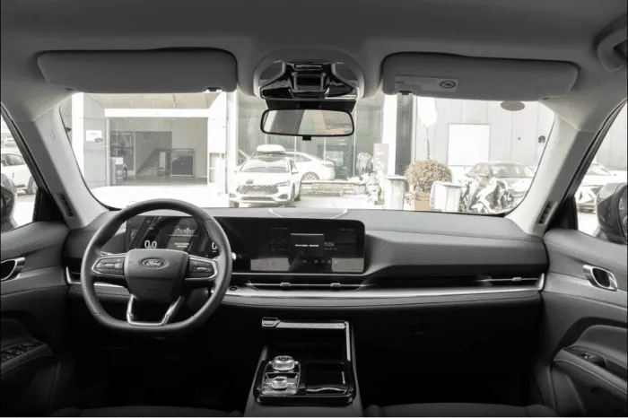 坐进福特领睿车内,内饰看着特别舒服,简约实用还很有质感,妥妥的家用车调性!中控台布局清爽,按键旋钮位置顺手,开车盲操作也没问题。常接触的地方都是软质材料,摸起来不廉价,缝线细节也精致。12.3英寸双联屏尺寸够大,颜值拉满,车机功能也全,还支持手机互联,娱乐需求轻松满足。多功能方向盘搭配电子式旋钮换挡,既有电驱的新潮感,又保留了传统驾控的熟悉感,老少都能接受,这种平和的设计也特别贴合家庭审美。