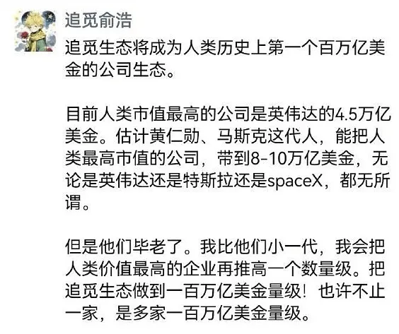 CEO俞浩在演唱会上还立了个flag,说“几年后成为世界首富时会向撒贝宁凡尔赛”,还定了个“3年内2万人、营收1万亿”的目标。
