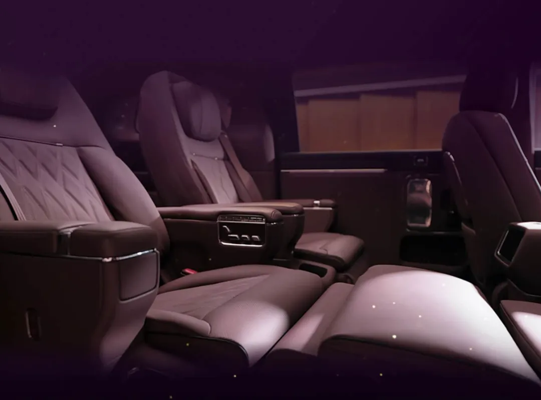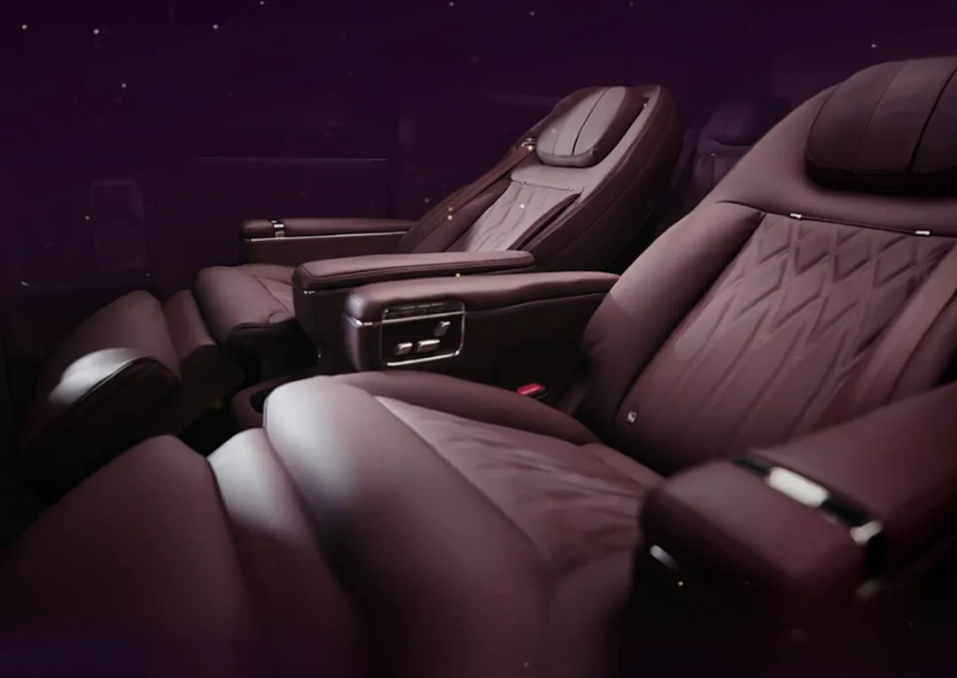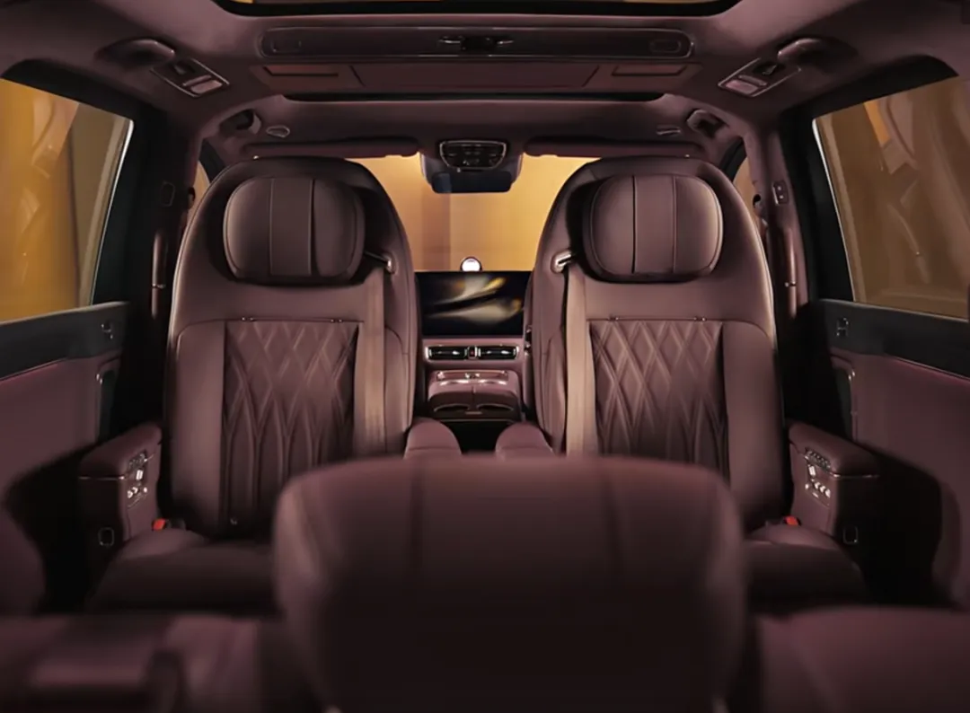 但我更在意的是屁股底下的感受。二排号称“伊姆斯躺椅”,这名头借得挺大。伊姆斯椅讲究的是包裹和支撑,V9搞了个123度双零重力,还有1.05米的腿托展开。