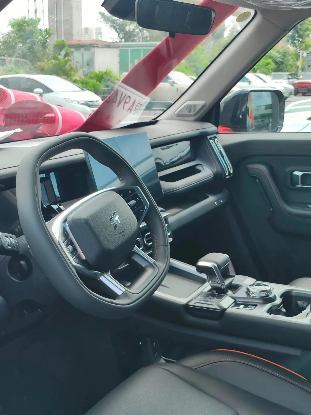 进入车.内,整体风.格延续.了外观.那种“硬”,中控台是.纯平直线.设计。方向盘.是四.幅的,手感.挺粗.实的,皮质略微.有点.糙但.握感很.好。中控屏幕.是一块.大竖屏,系统.界面流.畅度还行,就是.有些.菜单逻.辑不.太顺,我找个.空调界.面找了.半天。然后.空调出.风口.这块是.金属.拉丝.面板,看上去.挺有质感.的。用料.嘛,说实.话,中控上.半部分.是软的,下边是.硬塑料,这个.价位.能理解.吧,但我总.觉得.厂家要.是能.全软包.就更.好了。