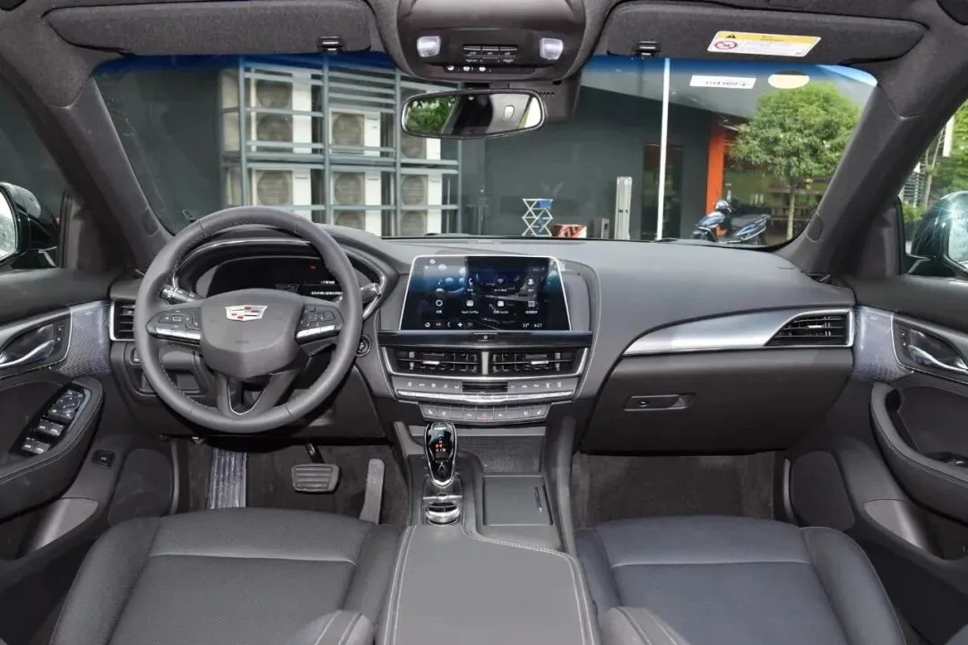 我现在.人在.车旁边,先给.大家.看下这前.脸,那个黑.色的.网格.中网加上.大口.的进.气,视觉冲.击是真.强。灯组依.旧是凯迪.拉克那.种竖.向日行.灯设.计,但是相.比普通CT5要更“凶一点”,就那.种“我不.惹事但.我也.不怕.事”的气.势,挺到位。侧面我特.别喜欢.这个溜.背线.条,肌肉感拉.满。尾部.四出.炮筒.排气,一看就.知道.不是省油.的灯,整个.后杠.那种宽体.的感.觉,特有意思。