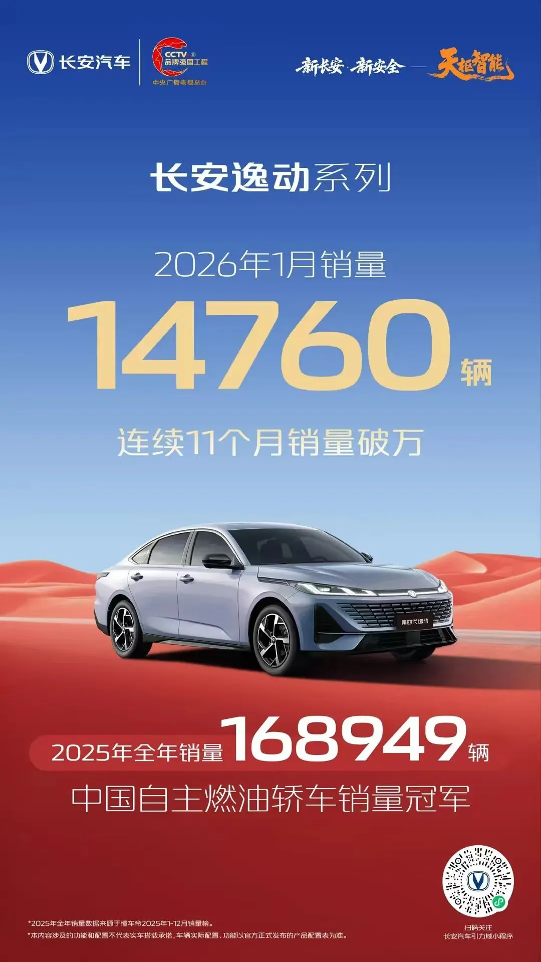 长安逸动系列 2025年中国自主燃油轿车销量冠军2026年1月销量14760辆,连续11个月销量破万#新央企新长安 #长安逸动