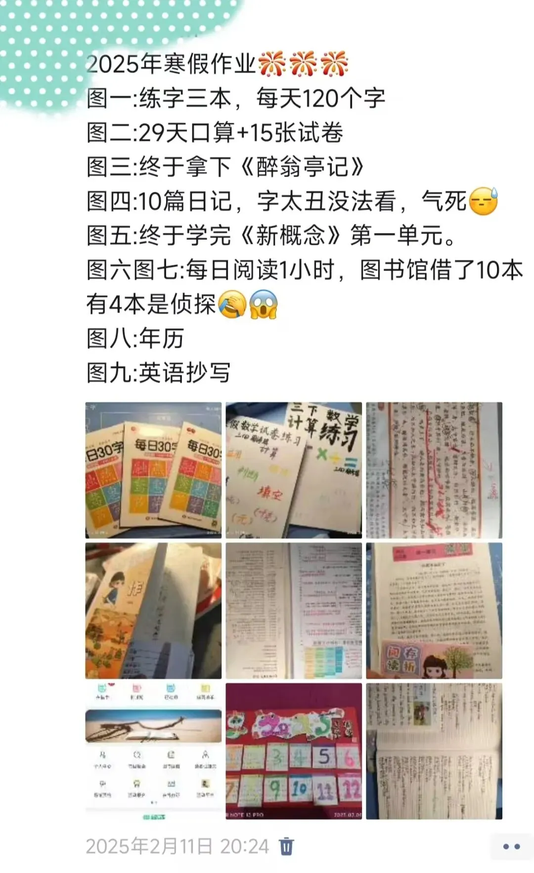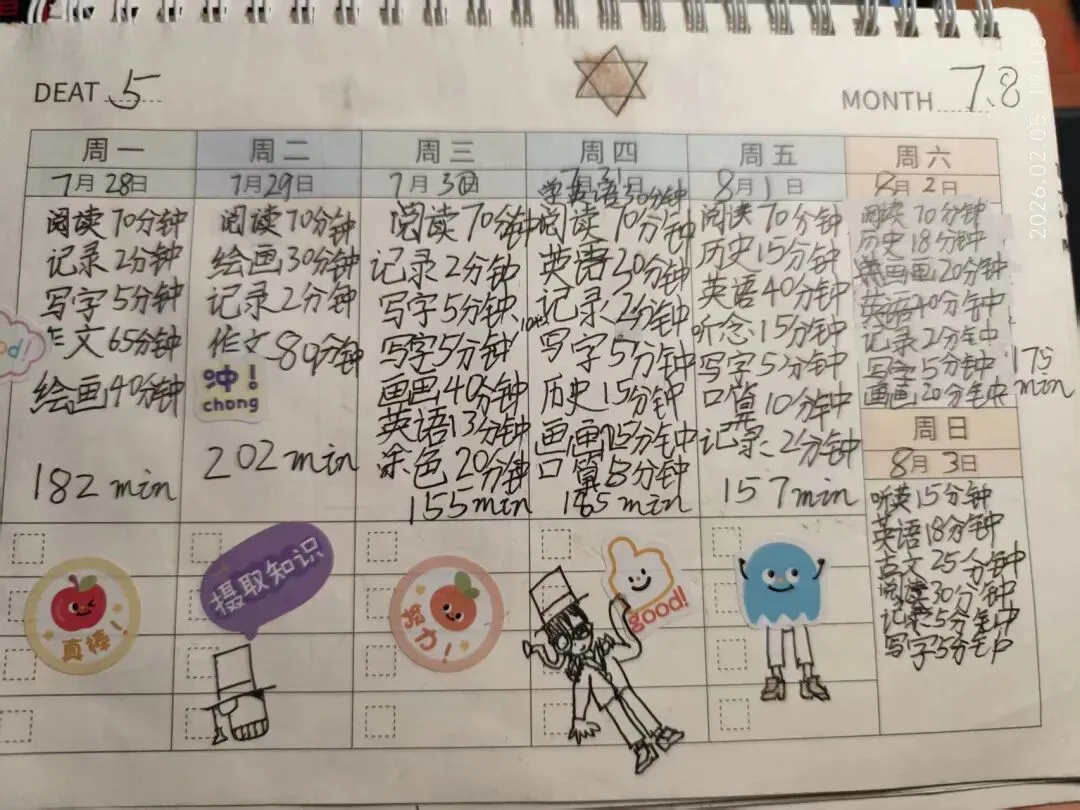 去年暑假的记录显示,孩子完成的内容远超预期: