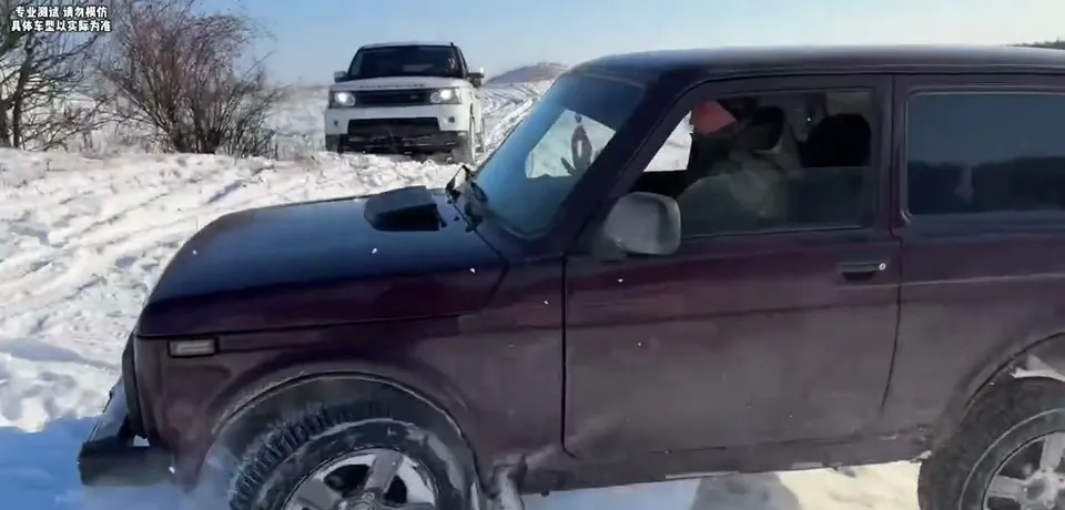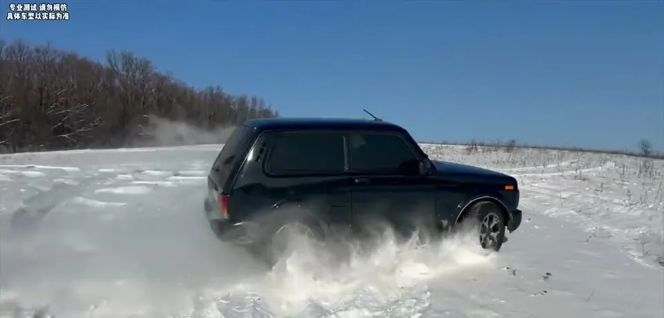 俄罗斯拉达尼瓦爬雪坡,虽然最大功率只有83马力,但拉达尼瓦仍然展现出强大的越野实力。