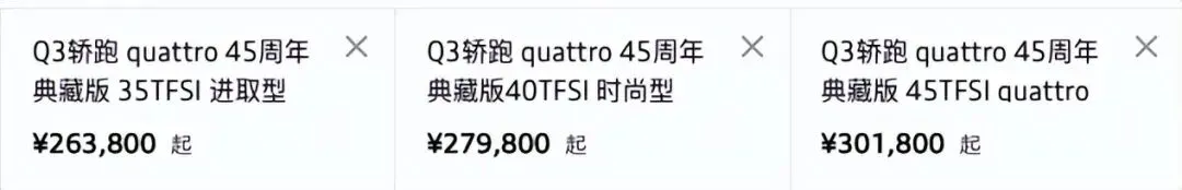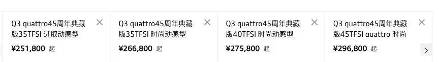 日前笔者获悉,2026款奥迪Q3家族现已正式上市,其中Q3 45周年典藏版共推出4款车型,官方指导价25.18万-29.68万元;Q3 Sportback可选3款车型,官方指导价26.38万-30.18万元。作为年度改款车型,2026款奥迪Q3家族主要针对产品阵容做出了调整,例如取消了致雅型,RS套件燃速型版本也不再供应。