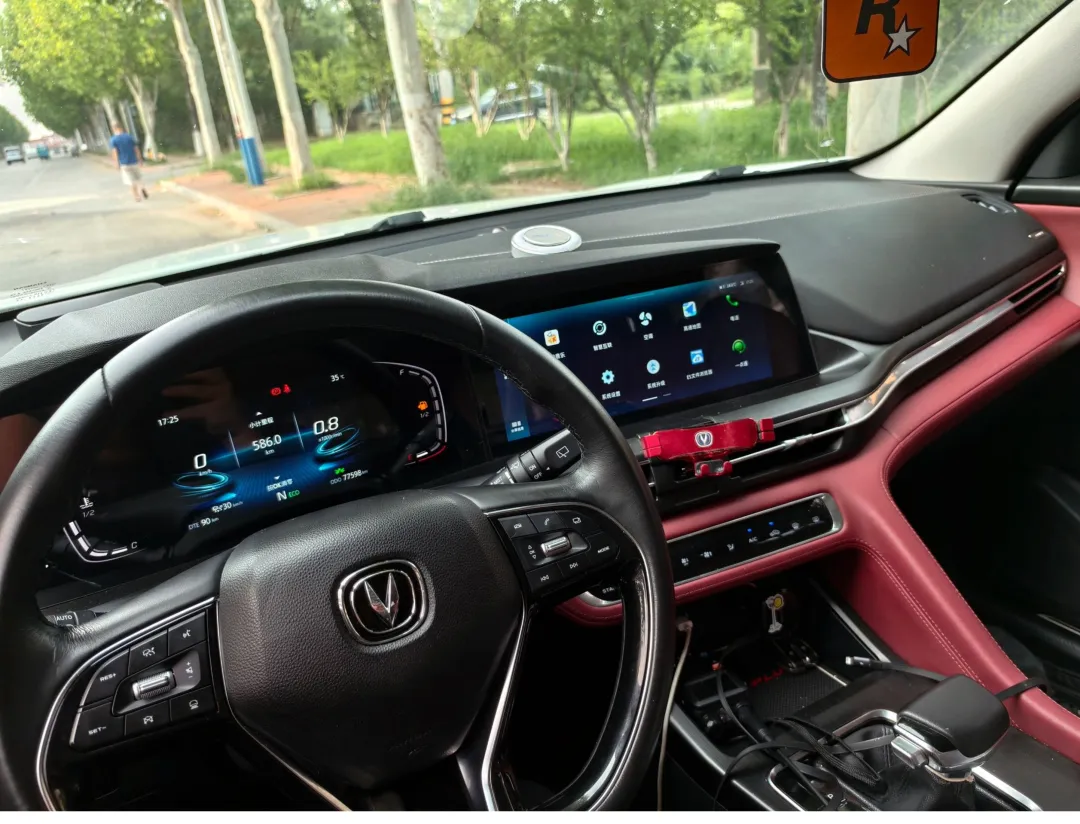 我坐进.来,这个.中控屏.确实亮.眼——37寸一.体屏,科技感直.接拉.满。用指.甲轻轻敲.一下,触感还.可以,不虚。方向.盘转一.圈试试,阻尼是我.比较喜.欢的.那种,略微.偏沉但粘.手。这个车.开起来最.打动我.的其.实是底.盘。悬架不.算太.软,在过减速.带的.时候.能明显.感觉到力.度在,但不会“打手”。我上.次试的CS55PLUS也是这种.调校,就是有点.德味。动力.方面1.5T+6AT,平顺、够用。其实.不惊艳.但很稳。我个人.觉得家.用够了。