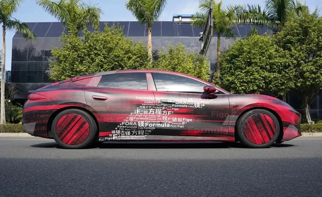 日前,网络上曝光了方程豹轿车镁7(网传名)谍照,此前,网络上已经曝光了镁9的谍照,镁7比镁9尺寸要小一些,采用轿跑车的动感姿态。首款轿车测试车伪装车衣上印满了疑似候选命名——包含方程、镁、Formula、镭、FORA等字样,最终命名还有待官方揭晓。新车车头低矮,有着较低的风阻系数,短前后悬长轴距设计,车尾溜背的动感设计。尾部拥有漂亮的小鸭尾样式,并有着与腾势Z跑车近似的尾灯样式,整个后包围也相当动感。