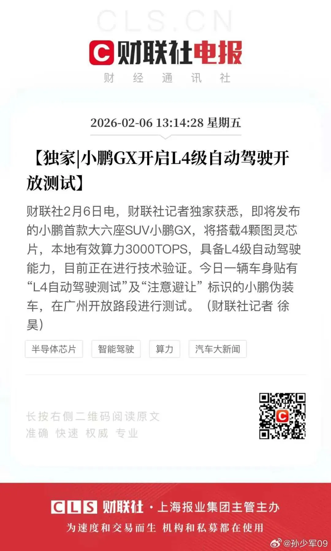 消息称小鹏GX开启L4级自动驾驶开放测试、小马智行与摩尔线程达成战略合作|汽车网摘
