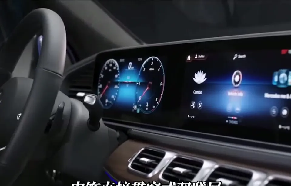 内饰方面三幅式方向盘加悬浮式中控屏,再加上奔驰标志性的氛围灯,这一代GLE