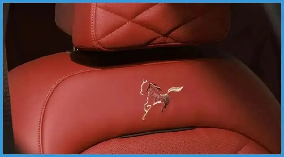 内饰部分,马年限量版的“仪式感”更足。金色迎宾踏板一亮,直接提升整个车内氛围。而火山红Sensafin合成皮座椅,低调豪华,透着一股不张扬的气场。