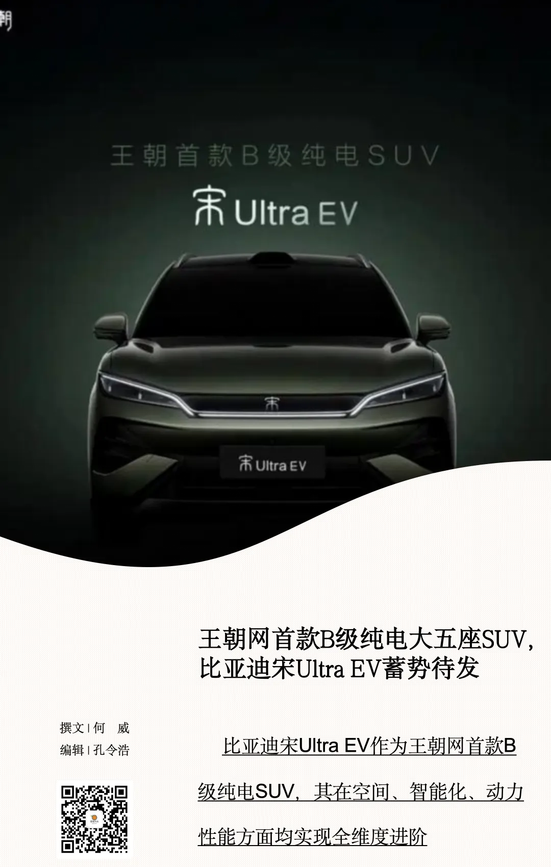 近日,比亚迪王朝网销售事业部总经理路天在微博透露了王朝网首款B级纯电SUV——宋Ultra EV的预告图。仅从命名上不难看出,宋Ultra EV将成为比亚迪宋家族的旗舰级SUV车型。其在尺寸上比之宋L DM-i又有显著放大,而与定位B级猎跑SUV的宋L EV又分属不同品类的产品。因此,它的到来将成为比亚迪在高端家用纯电SUV市场的一枚关键落子。