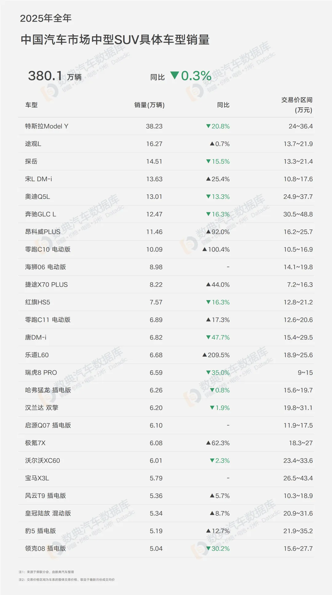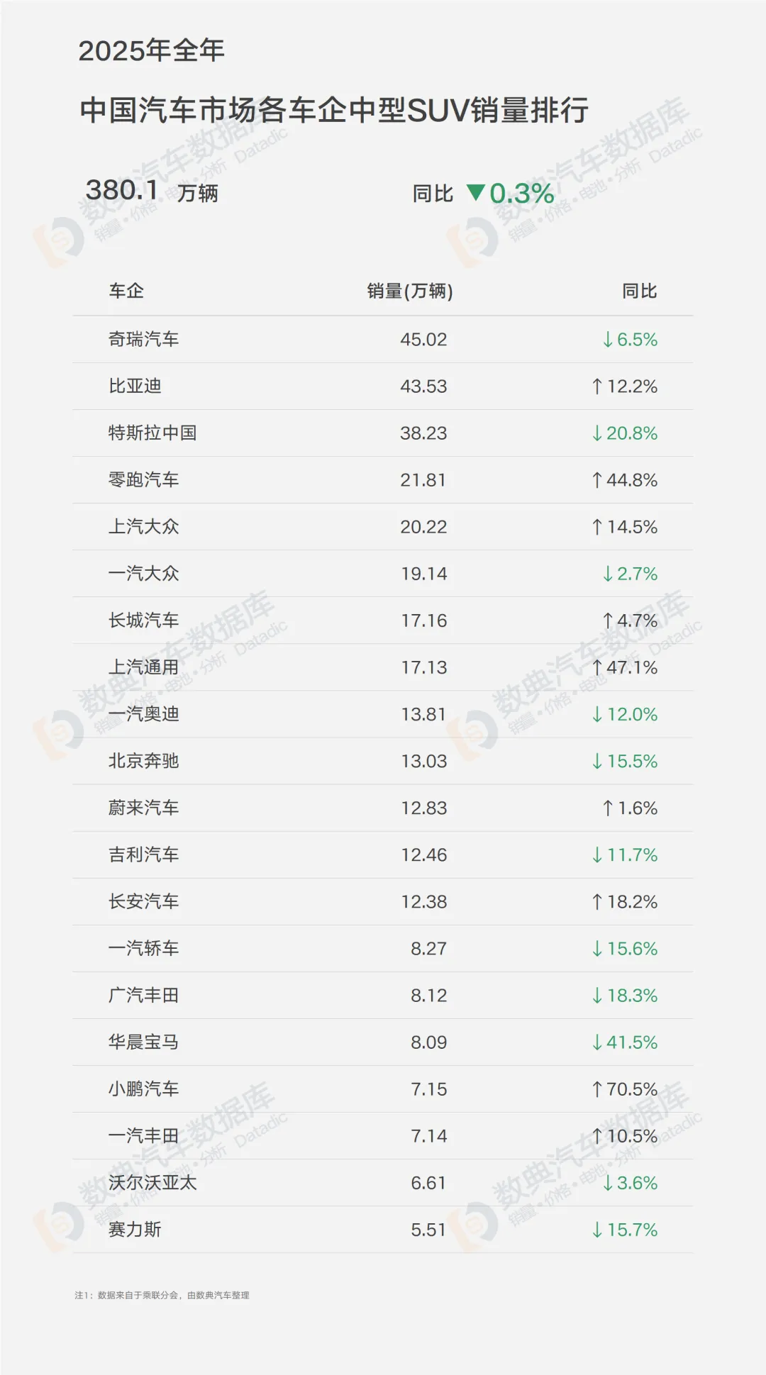 2025年全年,中国汽车市场中型SUV细分领域总销量为380.1万辆,同比微降0.3%,这一数据折射出细分市场已从增量扩张转入存量博弈阶段,各品牌间的竞争更加白热化;