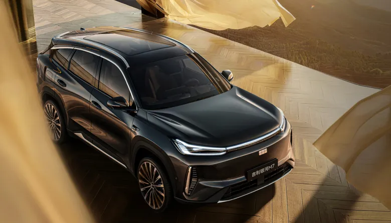 但把车标盖住,这不就是银河L7吗?别看名字从L变成了M,好像换了个辈分,实际上就是L7的改款,或者说是换了一套混动逻辑的“续航版”L7。