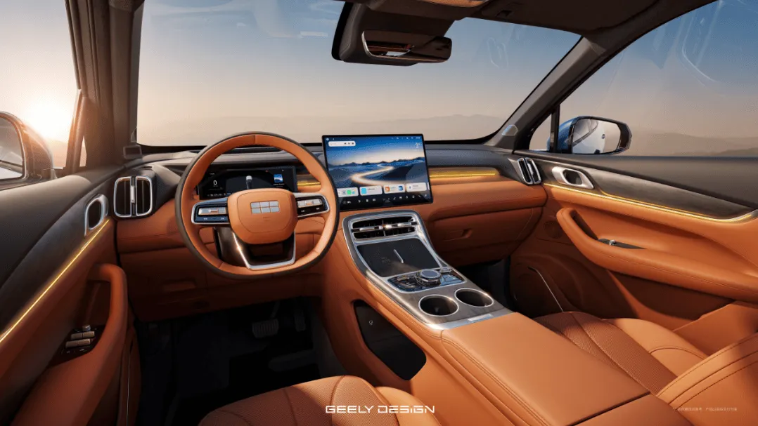 内饰采用“宽景广厦”理念,通过压缩仪表台厚度与优化A柱角度提升驾驶视野。配备1.2平方米全景天窗,增加座舱通透感。车内大面积使用生态麂皮与天然木纹饰板,增加质感。音响系统为Flyme Sound,配备23个扬声器。氛围灯支持256色AI调节,官方称可实现“声光共鸣”的多感官体验。