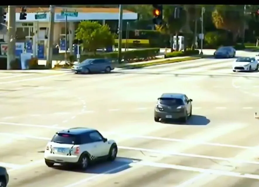 昨天看了一条视频,直行车道上,一辆轿车突然失控转弯,左转灯还亮着红灯,车身径直往前滑,眼看就要撞上周边车辆,路上瞬间险象环生!