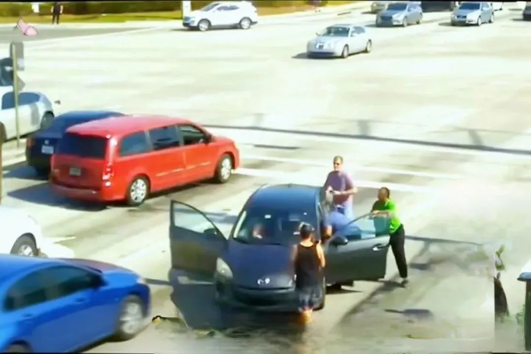 车门终于打开,灰衣女子率先坐进副驾驶,一把拉起手刹锁死车辆,再迅速打开驾驶车门。有急救经验的她一眼看出,驾驶员是突发疾病昏厥,她立刻在车里翻找急救药,黑人男子则解开驾驶员安全带,掐着人中做简单急救。