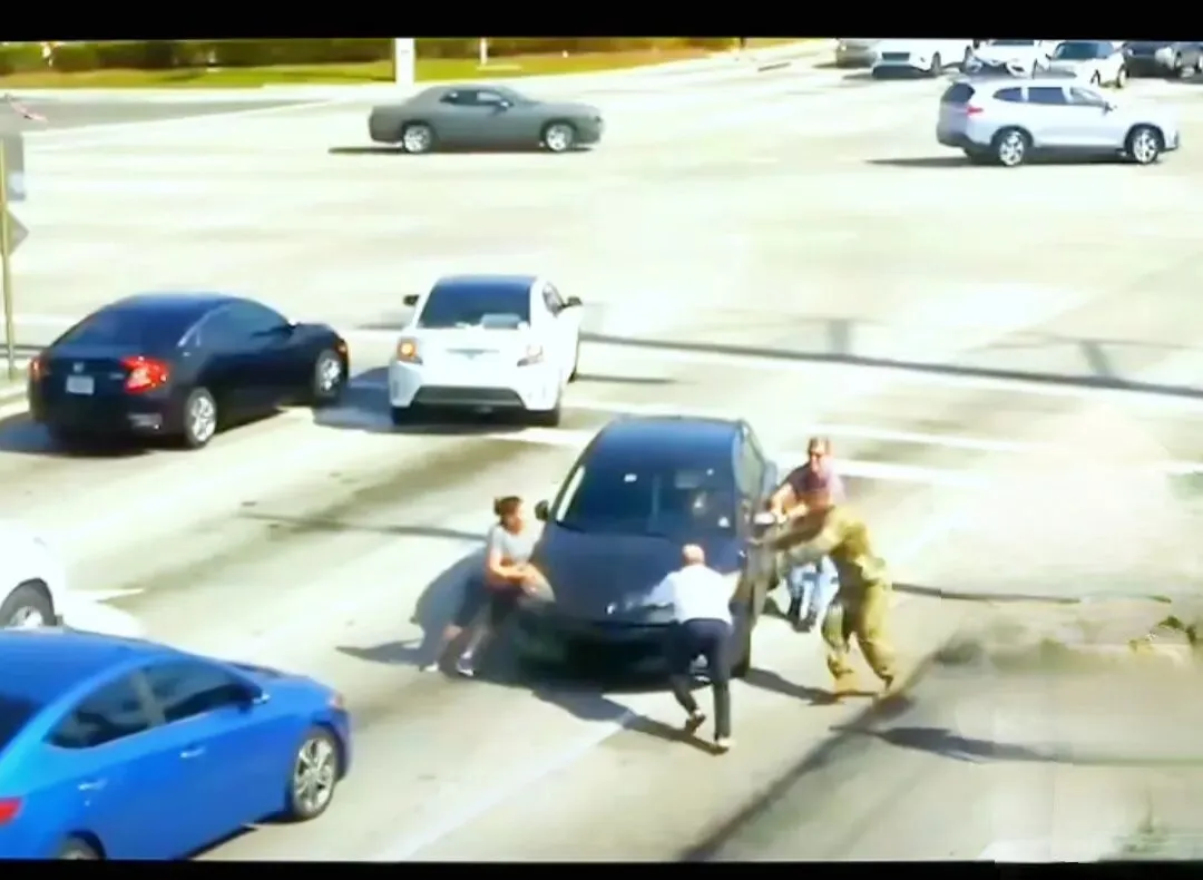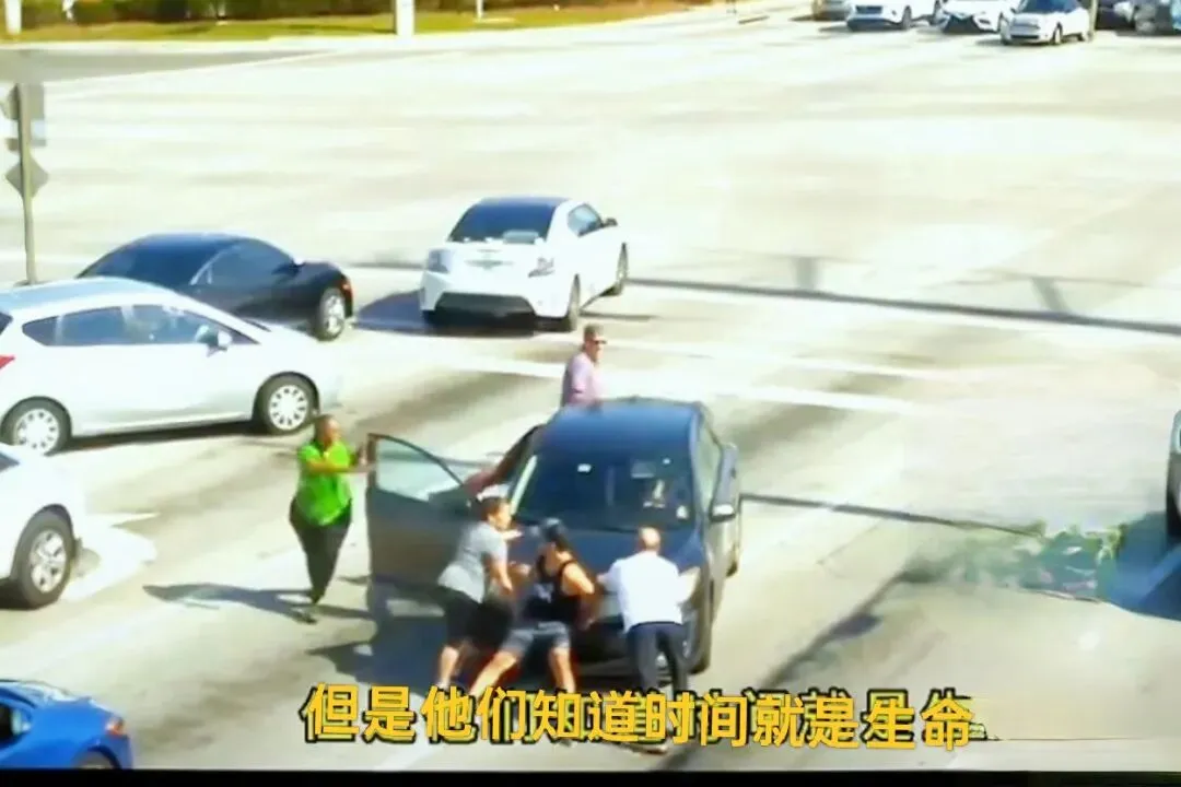 这群平民英雄八仙过海各显神通,配合得无比默契:绿衣黑人女士找来小哑铃递给队友,车头戴帽子的男子顶着车的同时,第一时间拨通急救电话;黑人男子试图钻进车里打开车门,车头三人死死顶住车身,防止再次溜车。他们不知道驾驶员到底遭遇了什么,却都清楚,时间就是生命,多耽误一秒,危险就多一分。