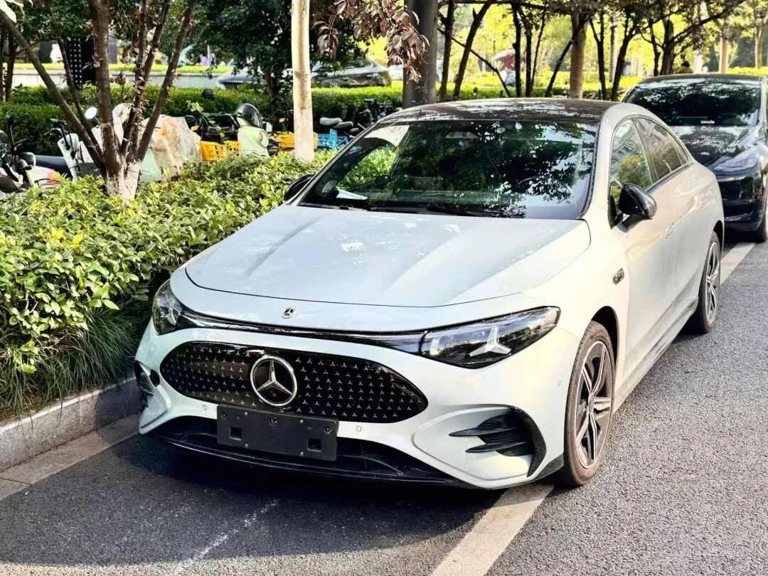 然.后咱先看外.观。这次奔驰的设计风格.我觉得挺成功.的,有点EQ家族.那种未来感,又不像EQE、EQS那种太过科幻。这.个.前脸那圈灯带,你晚上看远处.一眼就知道是奔.驰。整体比例还是挺“轿.跑”的,修长.又低趴,从侧面看真挺运动,我个人挺吃这一.口。