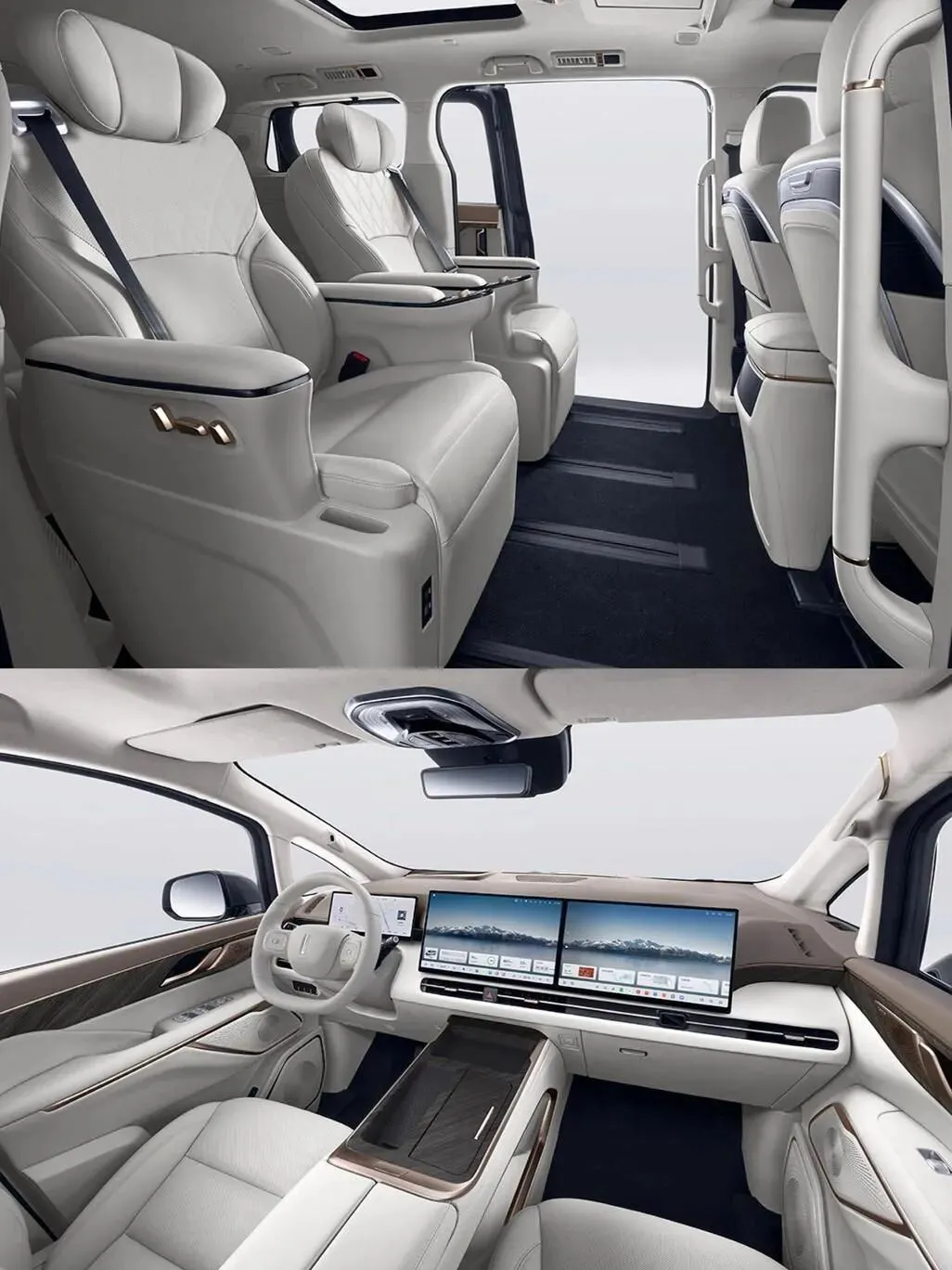 进到车里,这个质感.我.得夸.一句。座.舱是真的.有那种“小客厅”的.感觉。中控台是那.种悬浮屏设计,材质全是软包,缝.线我用手抠了.抠,挺紧实的没毛边。然后方.向盘握感厚.实,就是有点大,我自己开着的时候,掉头得.打两把,要搁SUV上可能一把.就拉回来了。