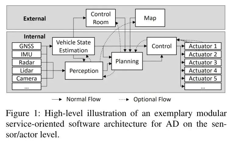 当前主流的自动驾驶堆栈,如图1所示,是一个典型的模块化、面向服务的架构。