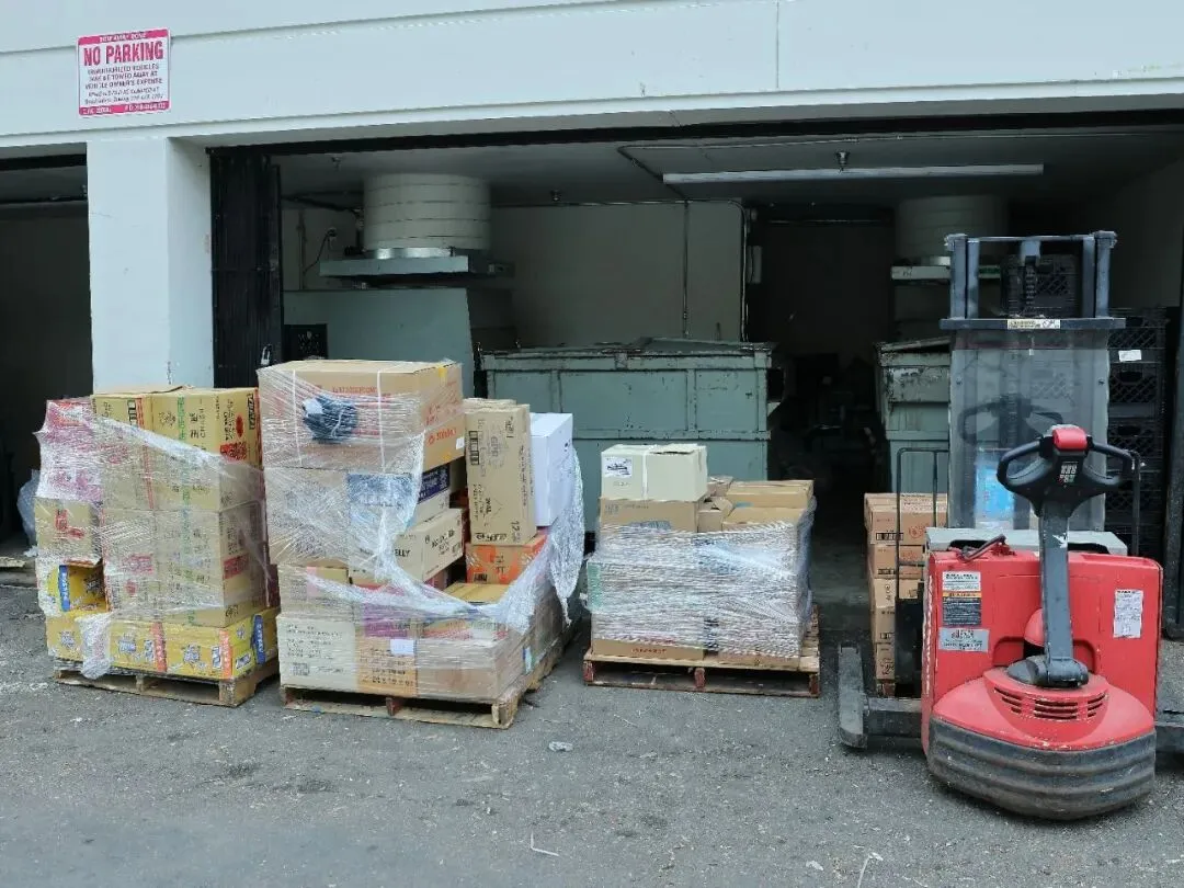 事故发生后,大华超市停工,图为该超市后门没来得及收拾的货物。侨报记者陈秋摄