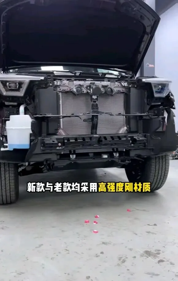 拆解后发现,车身高强度钢占比高达76.6%,A柱、B柱、上边梁都是双层高强钢,A柱还嵌了可变截面钢管,B柱是双腔热成型钢,能扛住1200℃高温摩擦 。车顶横梁和天窗加强板是一体成型的,实测能承受10吨静压。